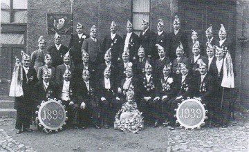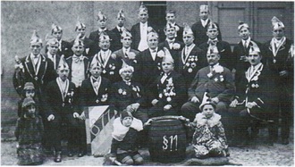 Erstes feststellbares gewähltes Komitee bestehend aus: Sitzungspräsident: Martin Maurer, Vize: Heinrich Scharhag 1., Kassierer: Fitz Umstätter, Schriftführer: Franz Scharhag, Protokollführer: Wilhelm Klunk, Ökonom: Josef Masmig, Beisitzer: Adam Scherer, Nicklaus Scharhag, Heinrich Scharhag II., Josef Jörg, Johann Eikard. Das Komitee beschloß folgende Veranstaltungen: Sitzungen - Eintritt: Herren 50 Pf, Damen 30 Pf; Maskenbälle - Eintritt: Masken 30 Pf, ohne Masken 75 Pf. Fremde Masken haben keinen Anteil an der Preisverteilung. Kassiert wurde nicht vom Kassierer, sondern von 2 gewählten „Zoggern".